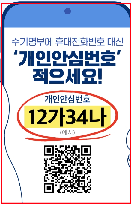 이렇게 방문하는 곳마다 적게 되는 수기명부에 휴대전화번호 대신에 개인안심번호를 적을 수 있는것을..