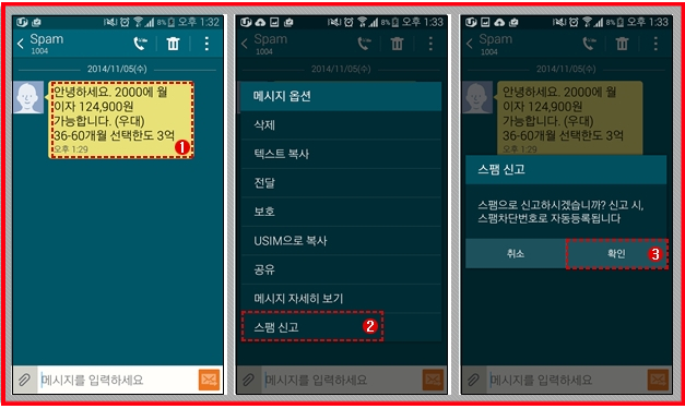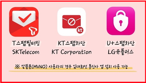 스마트폰 사용자들은 기본적으로 통신사에서 제공하는 문자 수신차단 앱을 설치하여 수신을 원치 않는 문구나 차단번호들을 등록하는 등 방지할 수 있습니다.