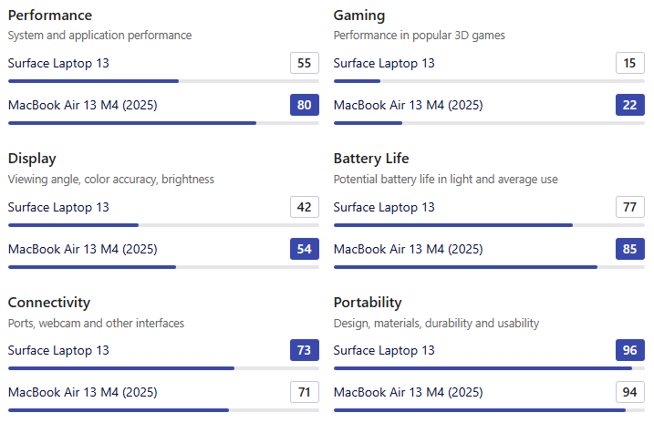 [Microsoft Surface Laptop 13 vs Apple MacBook Air 13 M4 (2025)]