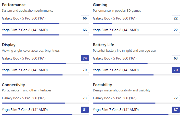 [Samsung Galaxy Book 5 Pro 360 (16") vs Lenovo Yoga Slim 7 Gen 8 (14″ AMD)]