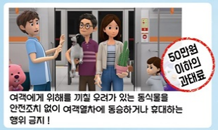 ◆ 여객에게 위해를 끼칠 우려가 있는 동식물을 안전조치 없이 여객열차에 동승하거나 휴대하는 행위 금지!