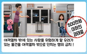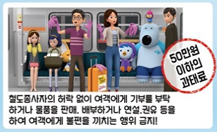 ◆ 철도종사자의 허락 없이 여객에게 기부를 부탁하거나 물품을 판매, 배부하거나 연설, 권유 등을 하여 여객에게 불편을 끼치는 행위 금지!