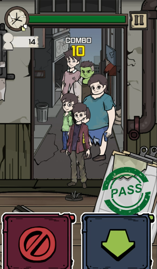 후이즈좀비 서바이벌은 좀비를 빠르게 판별하는 간단한 게임입니다. 더욱 빠르게, 연속적으로 판별할수록 높은 점수를 획득할 수 있습니다. 돌발 상황 및 특이한 좀비, 위협적인 사람들은 주의